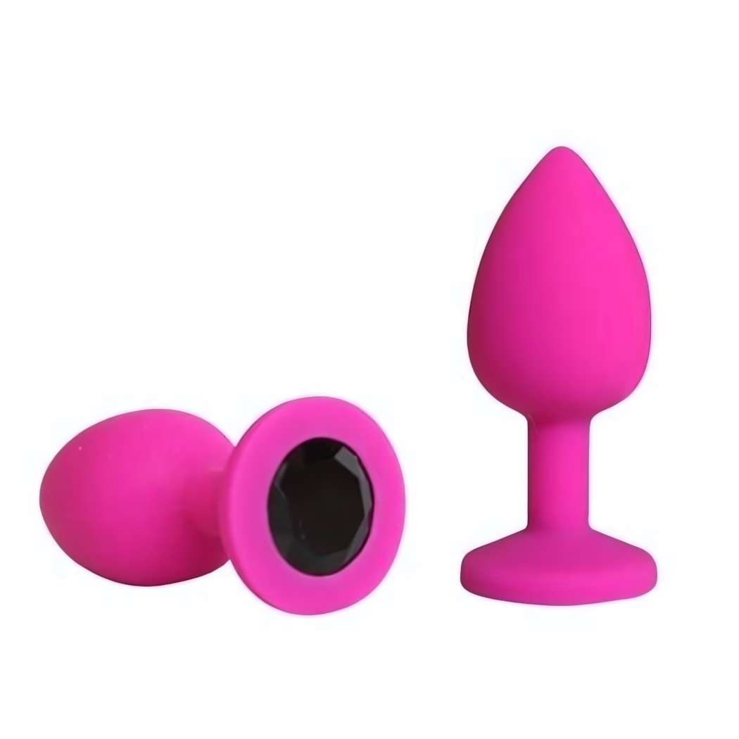 Анальная втулка фуксия с кристаллом, силикон гипоаллергенный, 7 см, водонепроницаемая