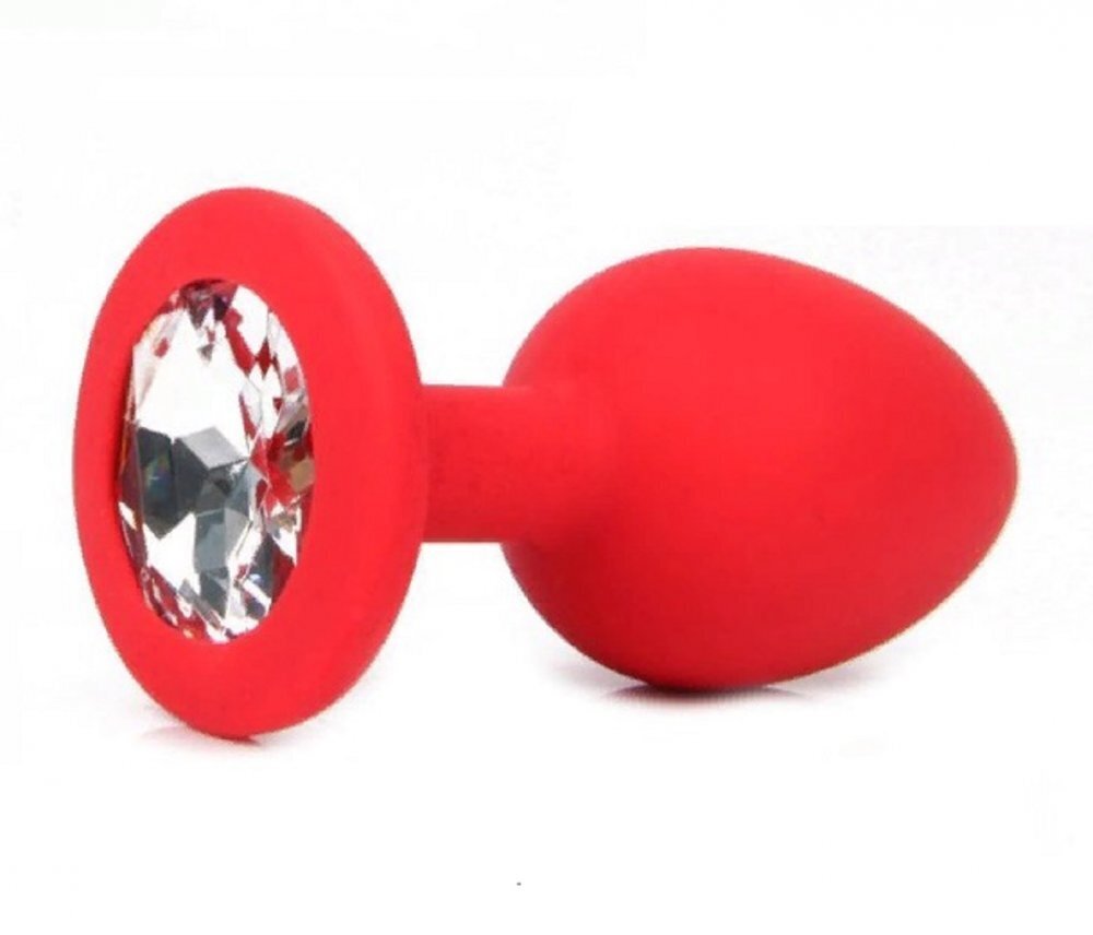 Анальная втулка INTLIFE с кристаллом, гипоаллергенный силикон, 9х4 см, красный