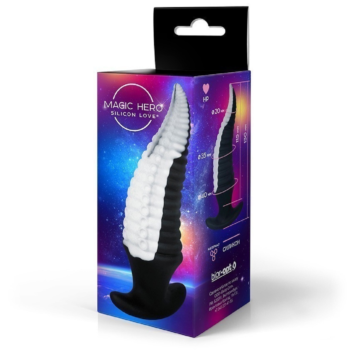 Анальная втулка Magic Hero, силиконовая, рельефная поверхность, 13 см, бело-черная