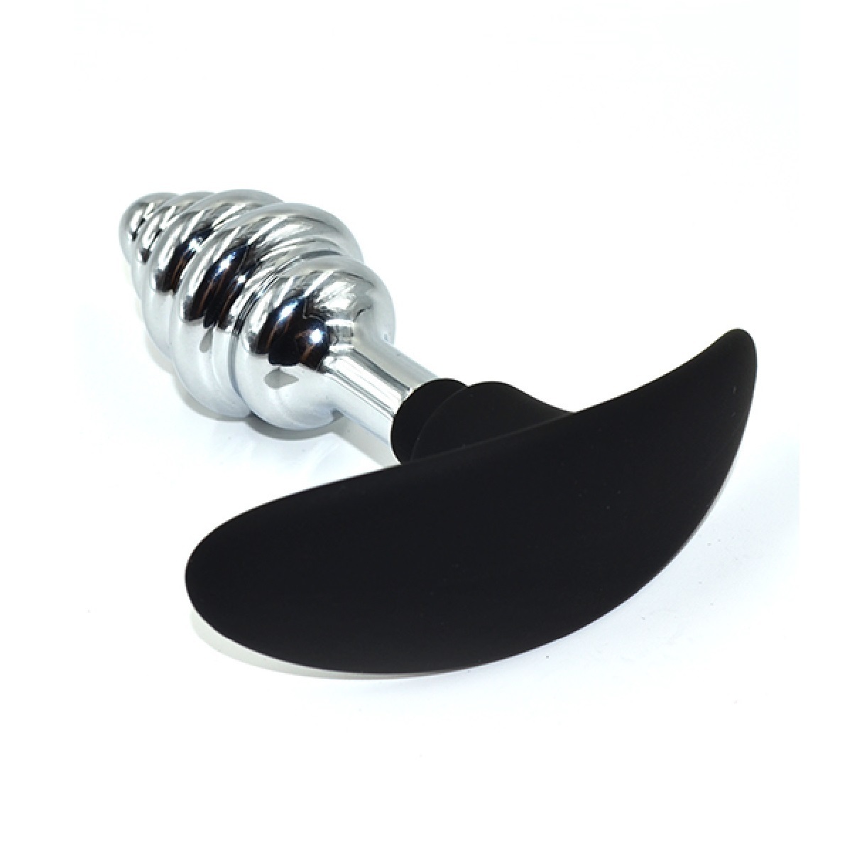 Анальная пробка ребристая для комфортного ношения, алюминий/силикон, 9 см, диаметр 3 см