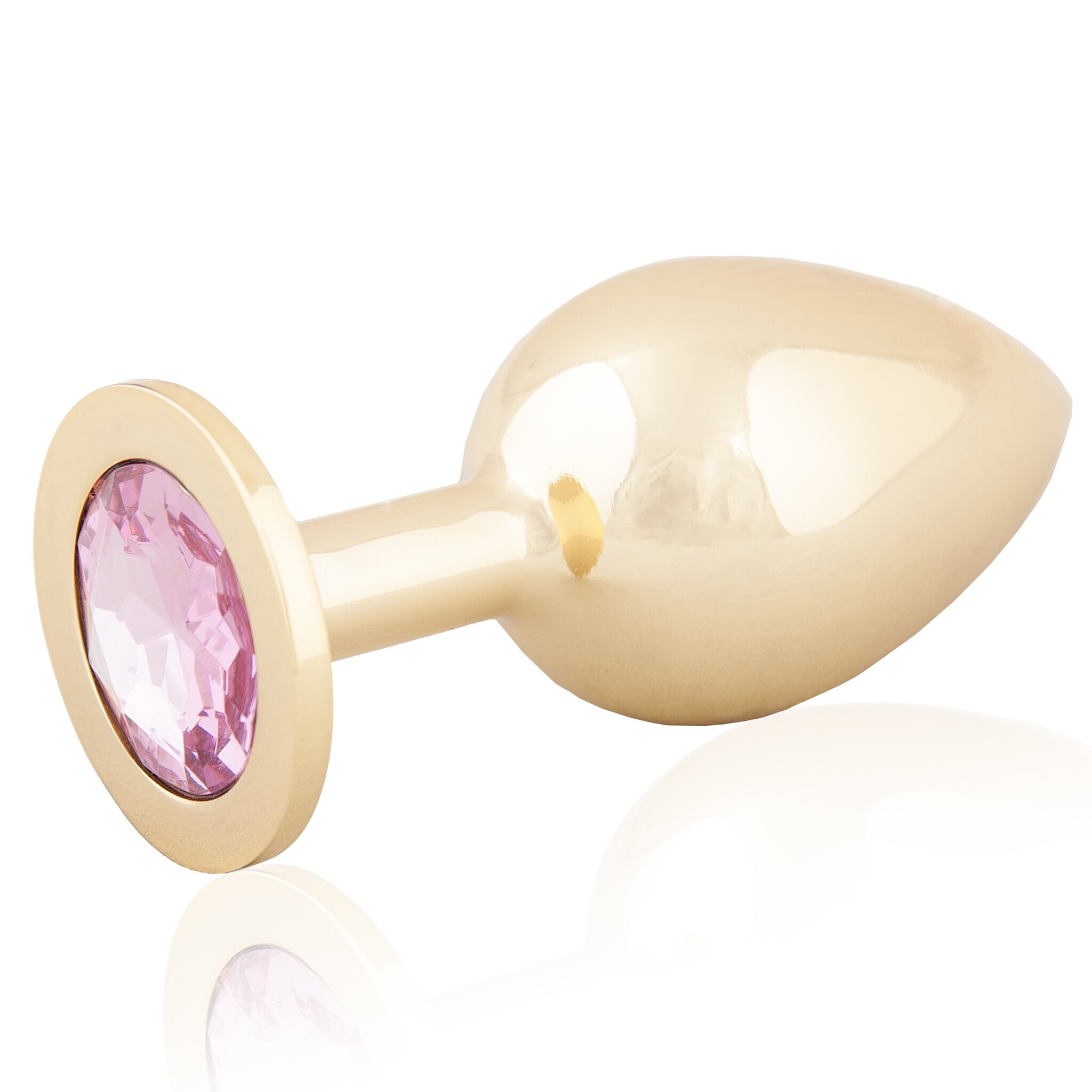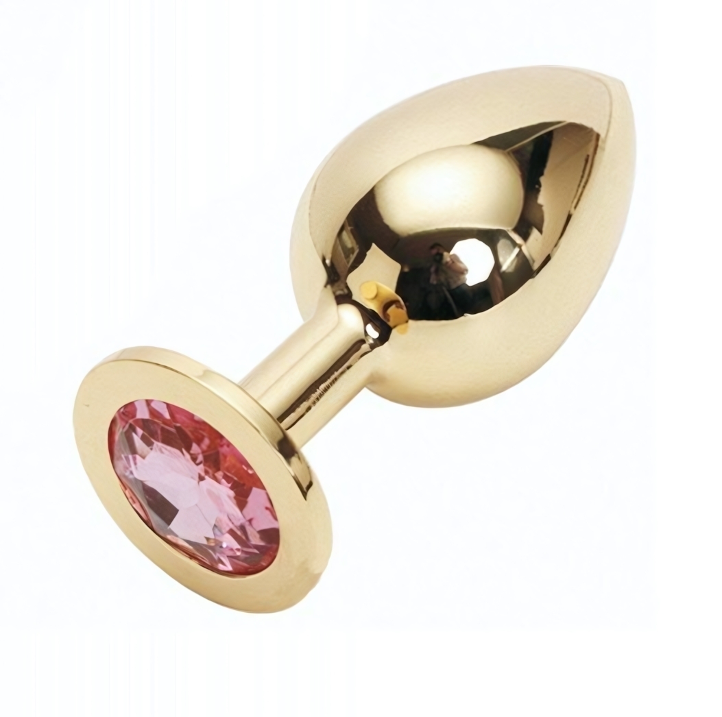 Анальная втулка с кристаллом, позолоченная сталь, гипоаллергенная, 9 см, розовый декор