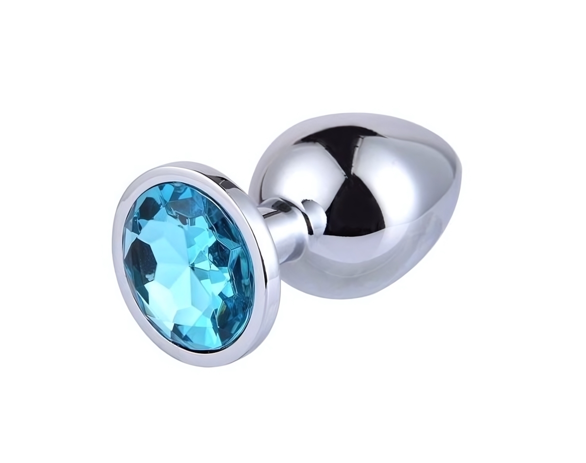 Анальная втулка с голубым кристаллом, сталь, 9 см, гипоаллергенная, водонепроницаемая