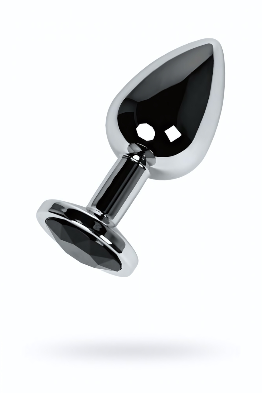 Анальная пробка с кристаллом, нержавеющая сталь, 8 см, серебристый, черный, диаметр 3,4 см