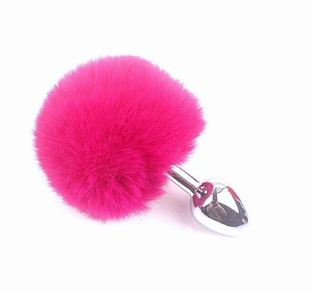 Анальная втулка с меховым хвостом, каплевидная форма, металл, 7х2,7 см, гипоаллергенная