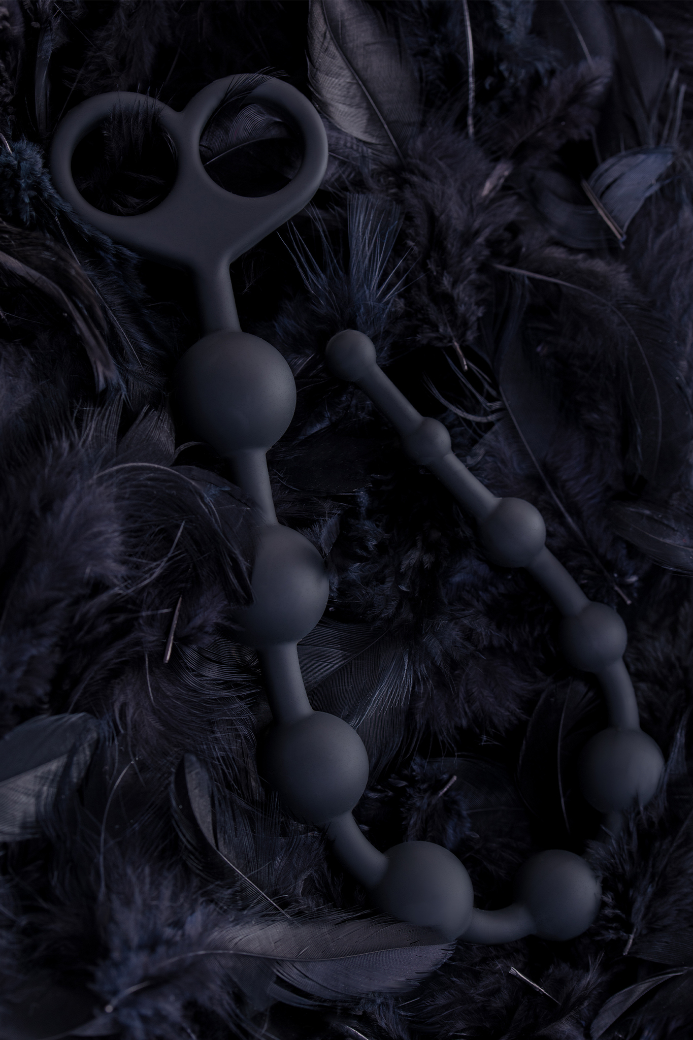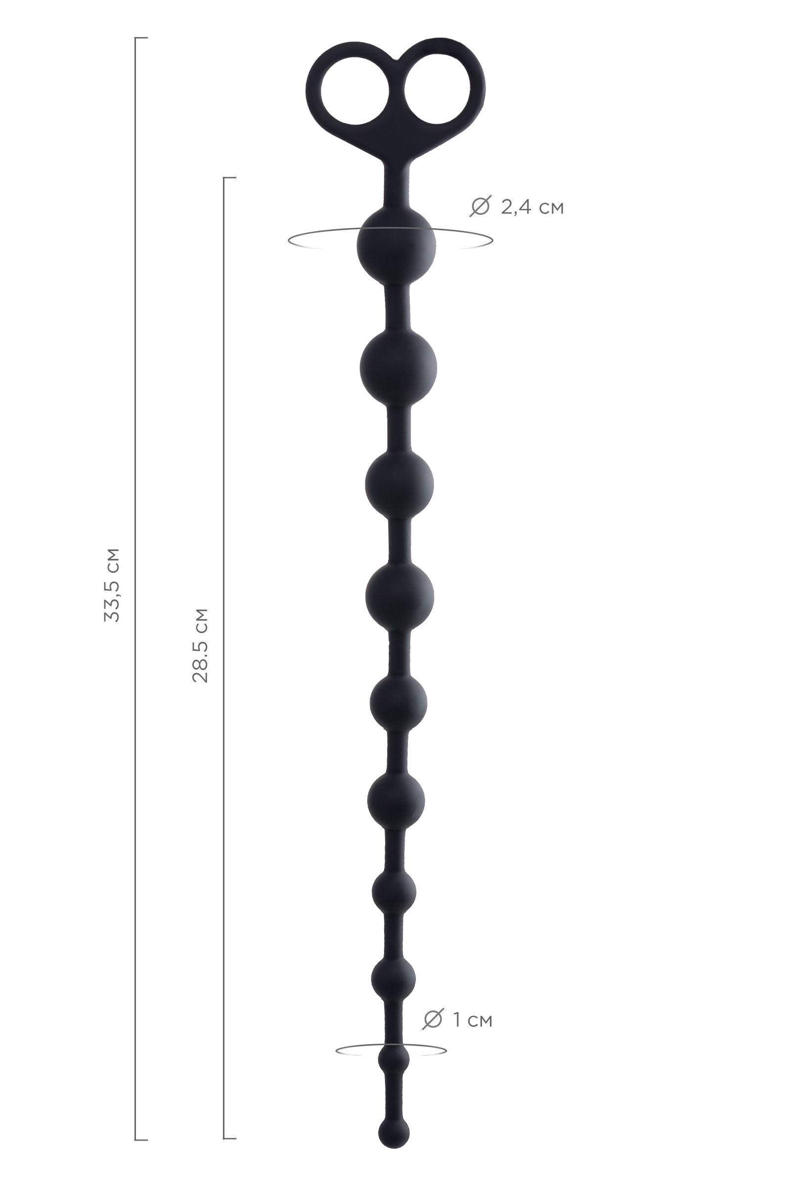 Анальные бусы «Black Night Edition», силикон, черные, 33.5 см, эргономичная ручка, постепенное увеличение бусин