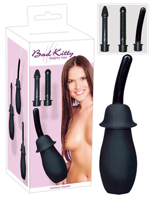 Анальный душ «Dusche» с 3 насадками, ABS-пластик, черный, 12 см, комплект с грушей