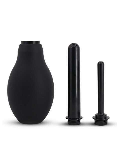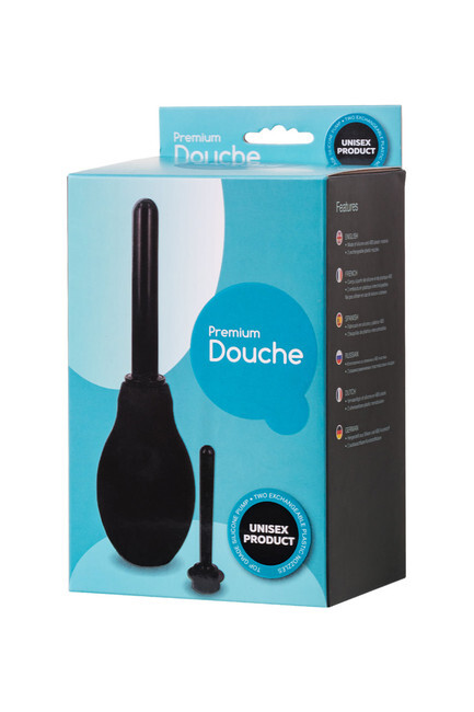 Анальный душ «Premium Douche» с 2 насадками, силикон и ABS пластик, черный цвет, 13 см