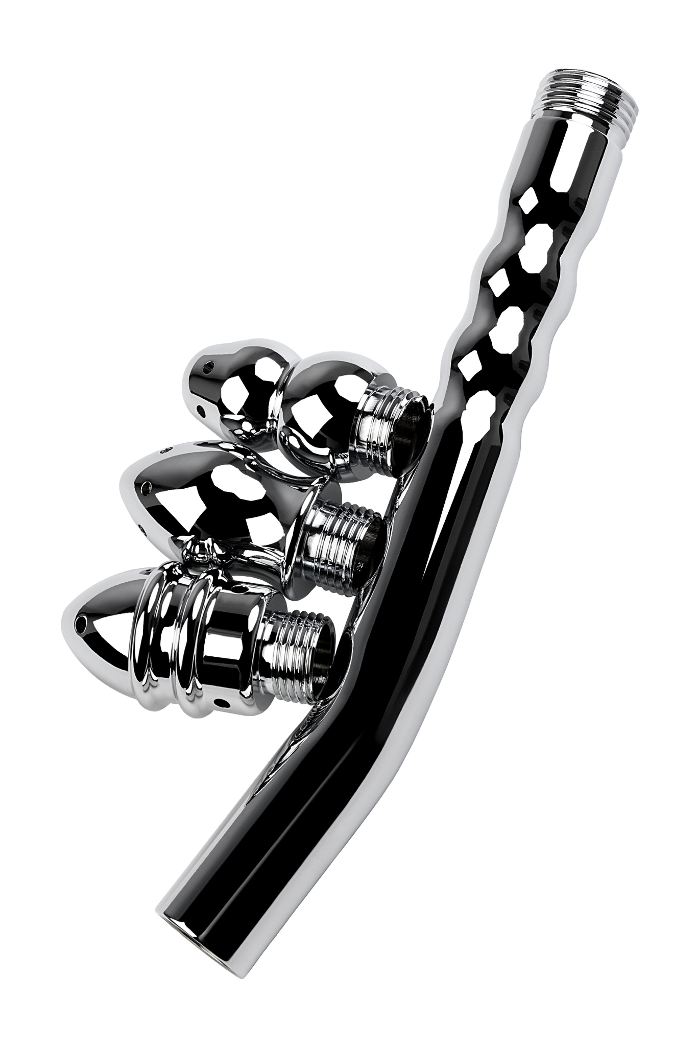 Анальный душ металлический, серебристый, 18см, с тремя насадками