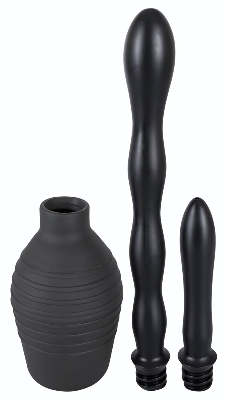 Длина груши составляет 13 см, а объем — 300 мл, что делает его удобным для хранения и использования. Малая насадка имеет длину 11,5 см и диаметр 2,3 см, в то время как большая насадка достигает 23 см в длину и 3 см в диаметре. Цвет — черный, что придает изделию стильный и современный вид.