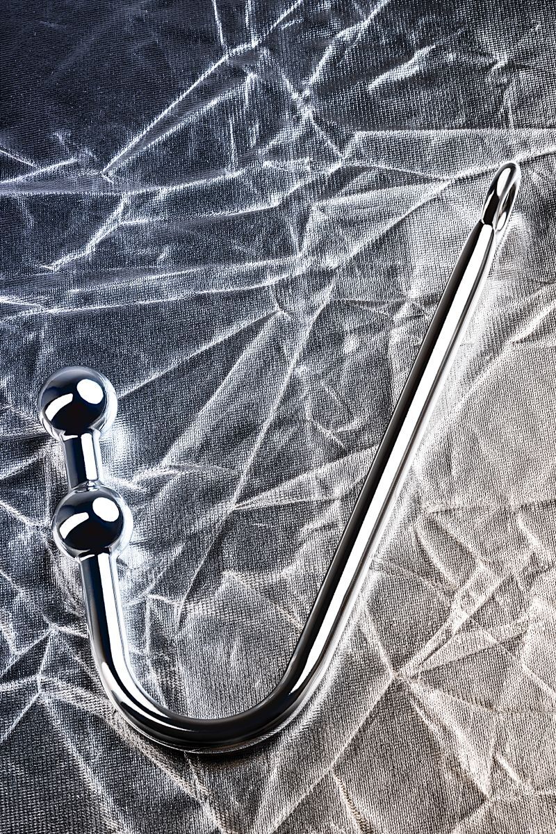 Анальный крюк 'Metal Hook' с шарами, длина 41см, диаметр 3см, серебристый