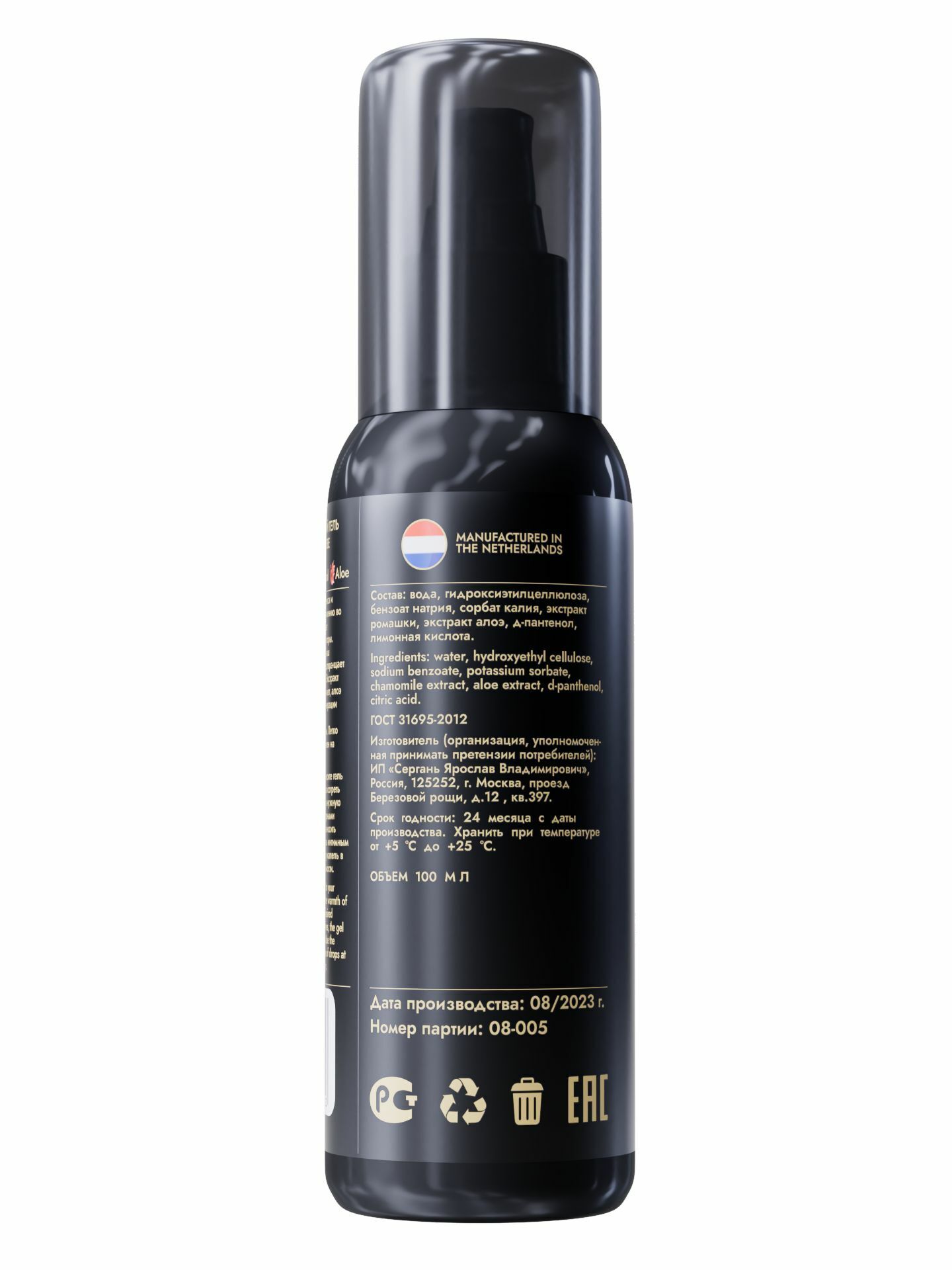 Объем флакона — 100 мл. Удобная помпа позволяет контролировать дозировку. Состав включает воду, пропиленгликоль, глицерин, молочную кислоту и другие безопасные ингредиенты. Производится в России по технологии SGAN Lab (Нидерланды).