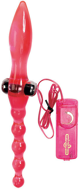 Конусовидное окончание (12.5 см) и анальная цепочка (15.5 см) из высококачественного термопластика. Совместимость с водными смазками и лубрикантами на силиконовой основе. Для работы требуется 1 батарейка типа AA (в комплект не входит).