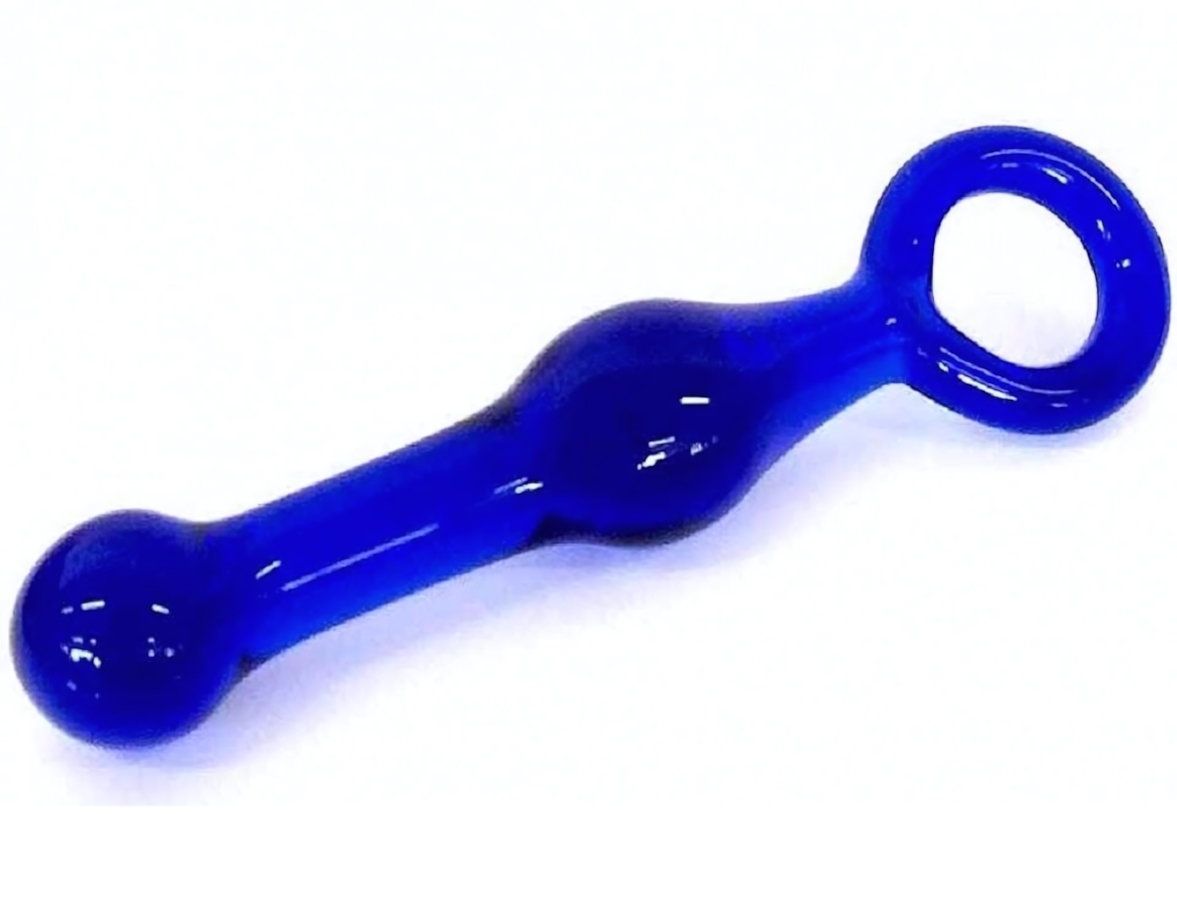 Анальная пробка стеклянная с кольцом, синий, 17,2 см, гипоаллергенная, безопасный дизайн