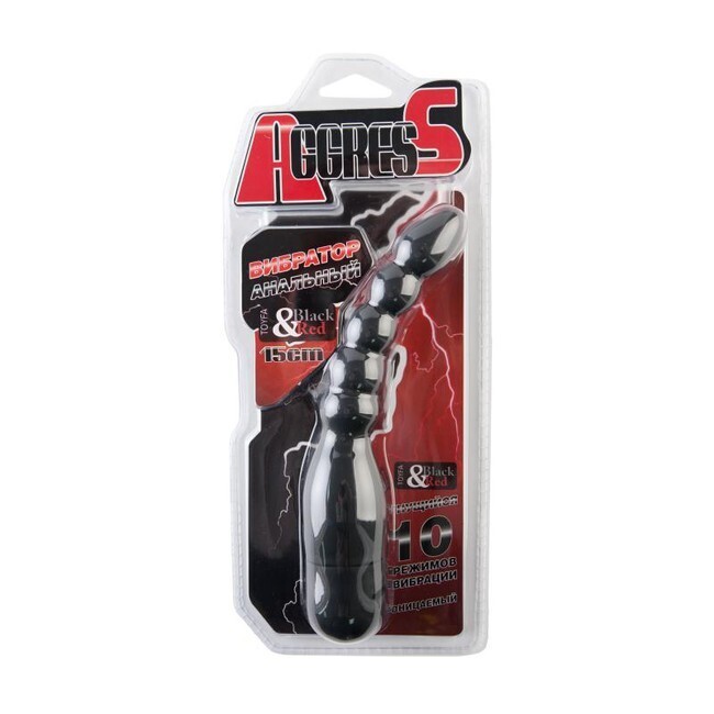 Анальный вибратор «Aggress» с 10 режимами вибрации, силикон, черный, 15,2 см