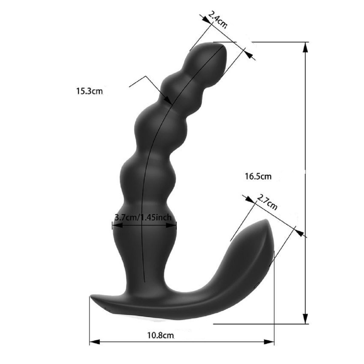 Анальный вибромассажер с пультом ДУ, 10 режимов, эргономичная форма, силикон, черный, 16.5 см