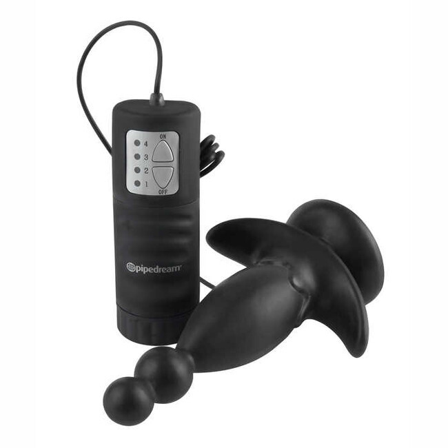 Анальный вибростимулятор с присоской, 4 скорости, гибкий TPE, черный, 12 см, комплект с аксессуарами