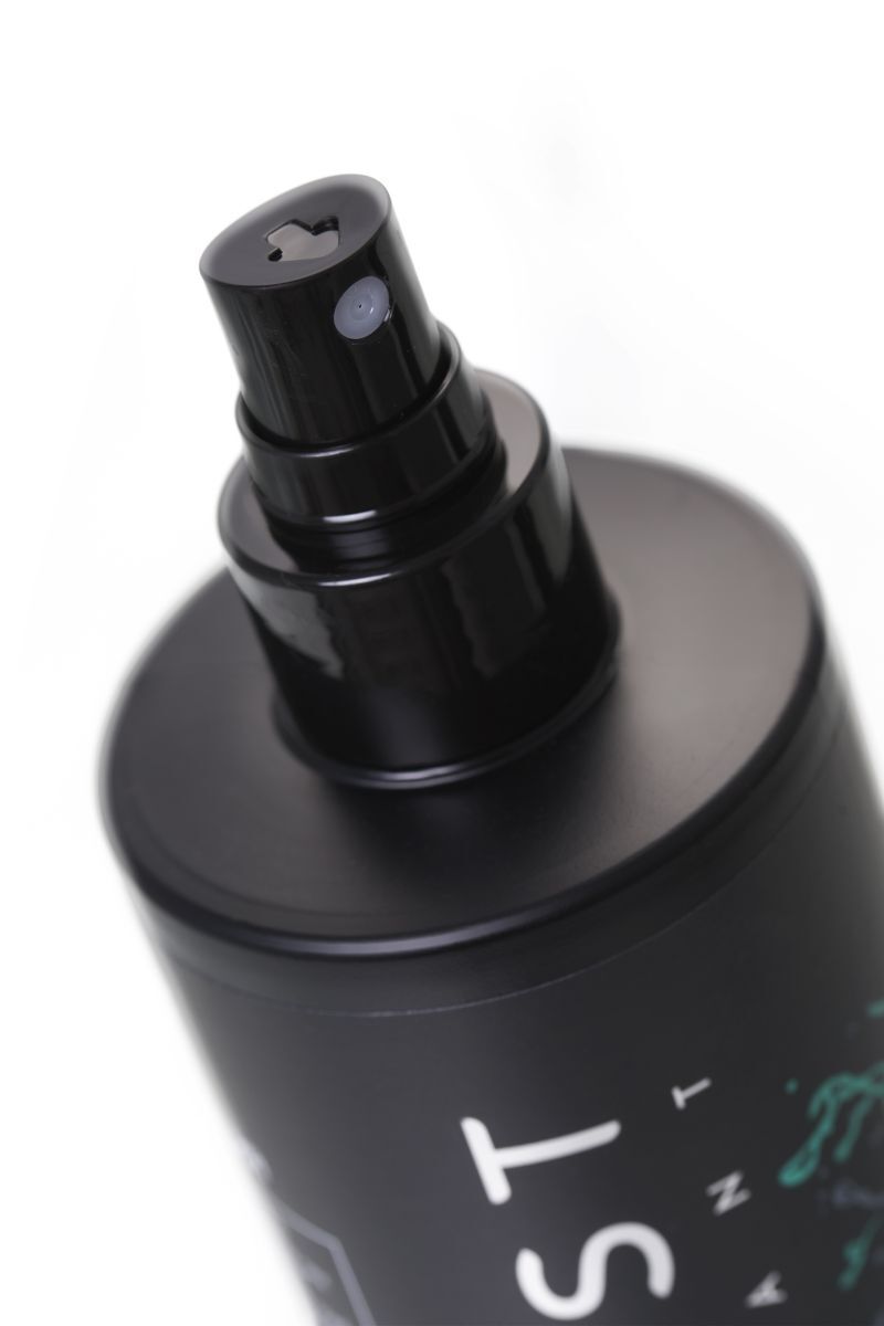 Цвет упаковки: черный матовый с зелеными элементами. Форма флакона: цилиндрическая с механическим распылителем.