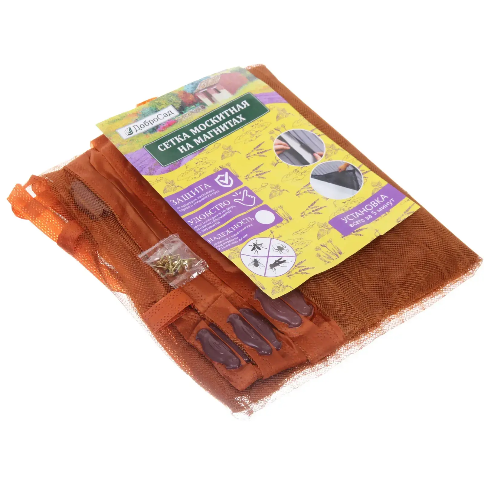 Размеры сетки составляют 100х210 см, что позволяет использовать ее на стандартных дверных проемах. Коричневый цвет сетки делает ее незаметной на фоне двери, а легкая сетчатая структура обеспечивает хорошую вентиляцию. Не упустите возможность сделать ваш дом более комфортным и защищенным от насекомых с помощью антимоскитной сетки на магнитах «Элис»!