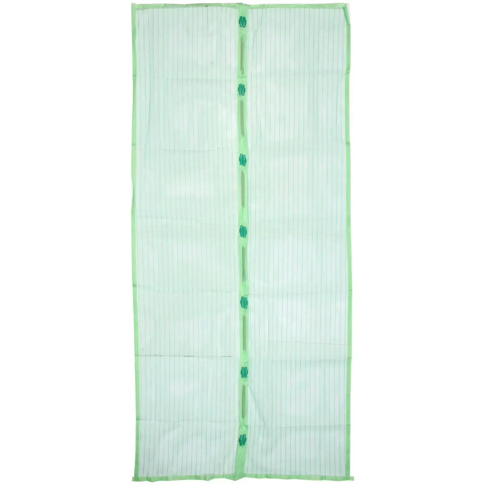 Размеры сетки составляют 100х210 см, что позволяет использовать её на стандартных дверях. Она выполнена из качественного ПВХ и магнитов, что гарантирует долговечность и надежность. В комплекте с сеткой идет набор кнопок для крепления, что делает установку еще проще.