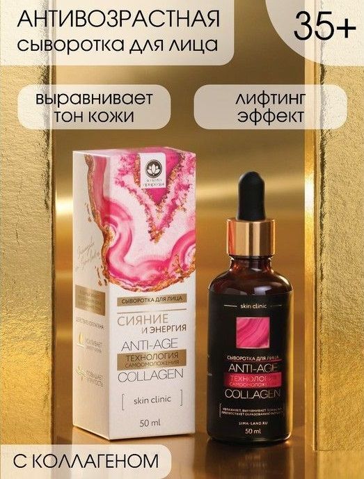 Подарите своей коже сияние и молодость с антивозрастной сывороткой «Сияние и энергия». Эта уникальная формула с коллагеном не только увлажняет, но и значительно повышает упругость кожи, предотвращая образование морщин. Сыворотка идеально подходит для женщин старше 35 лет, стремящихся к улучшению цвета лица и выравниванию тона кожи.