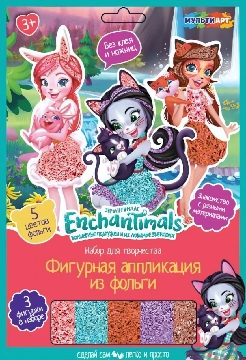 - 3 фигурки Enchantimals: Любимые персонажи мультфильма оживут в блестящих аппликациях.