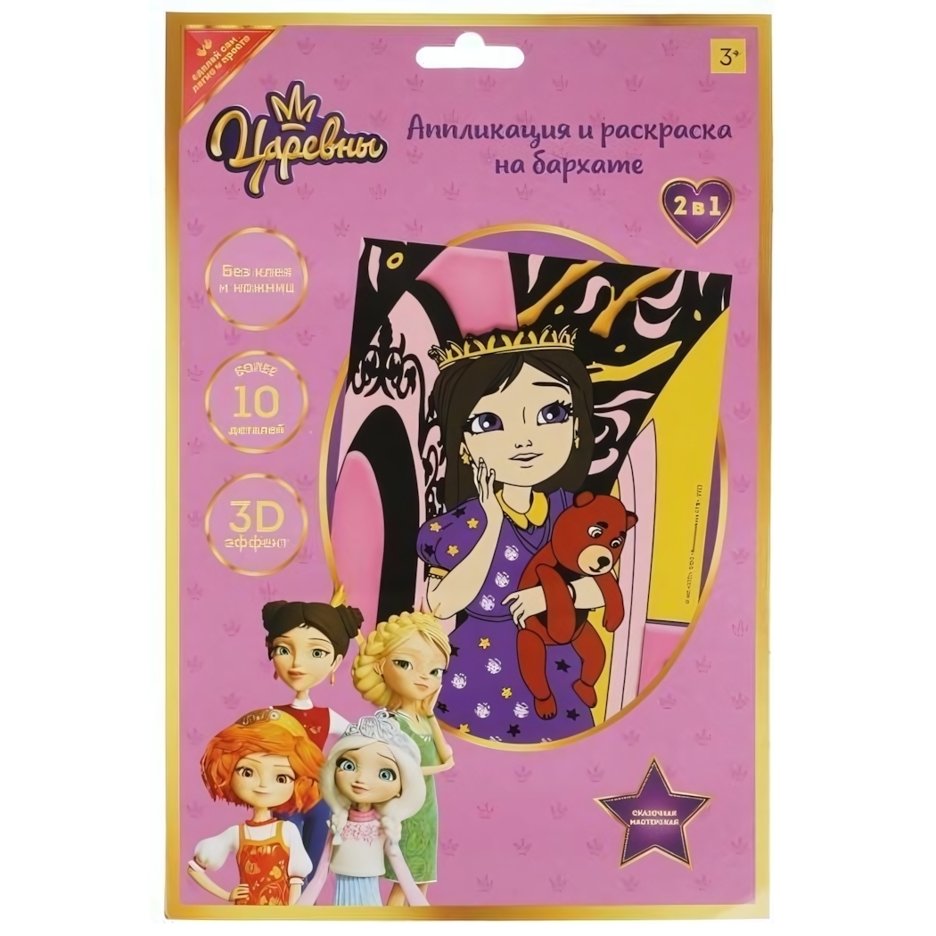 Аппликация на бархате 'Царевны', 17х23см, с фломастерами и стразами, от 3 лет