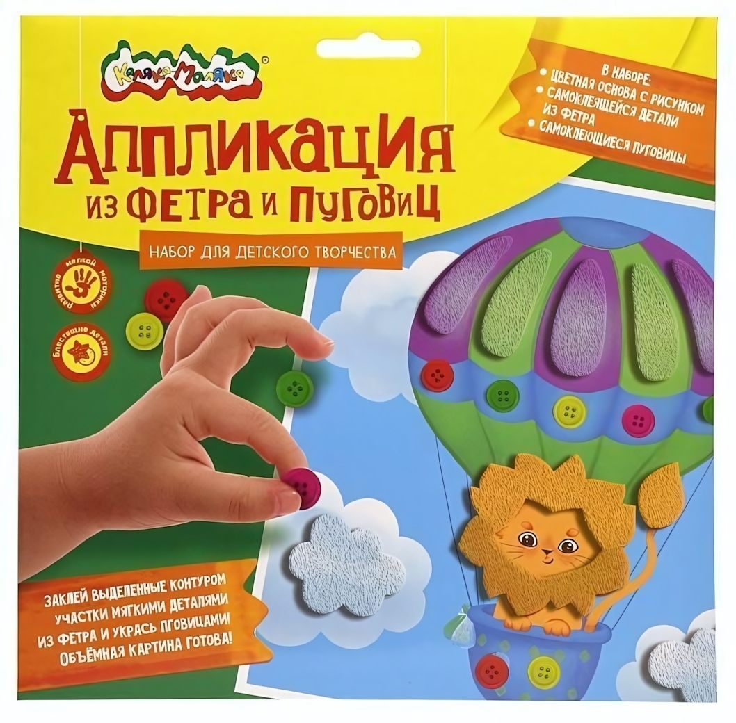 Детали аппликации самоклеящиеся, что позволяет даже маленьким детям легко создавать красочные композиции. Просто отклейте защитную плёнку и прикрепите элемент к основе.