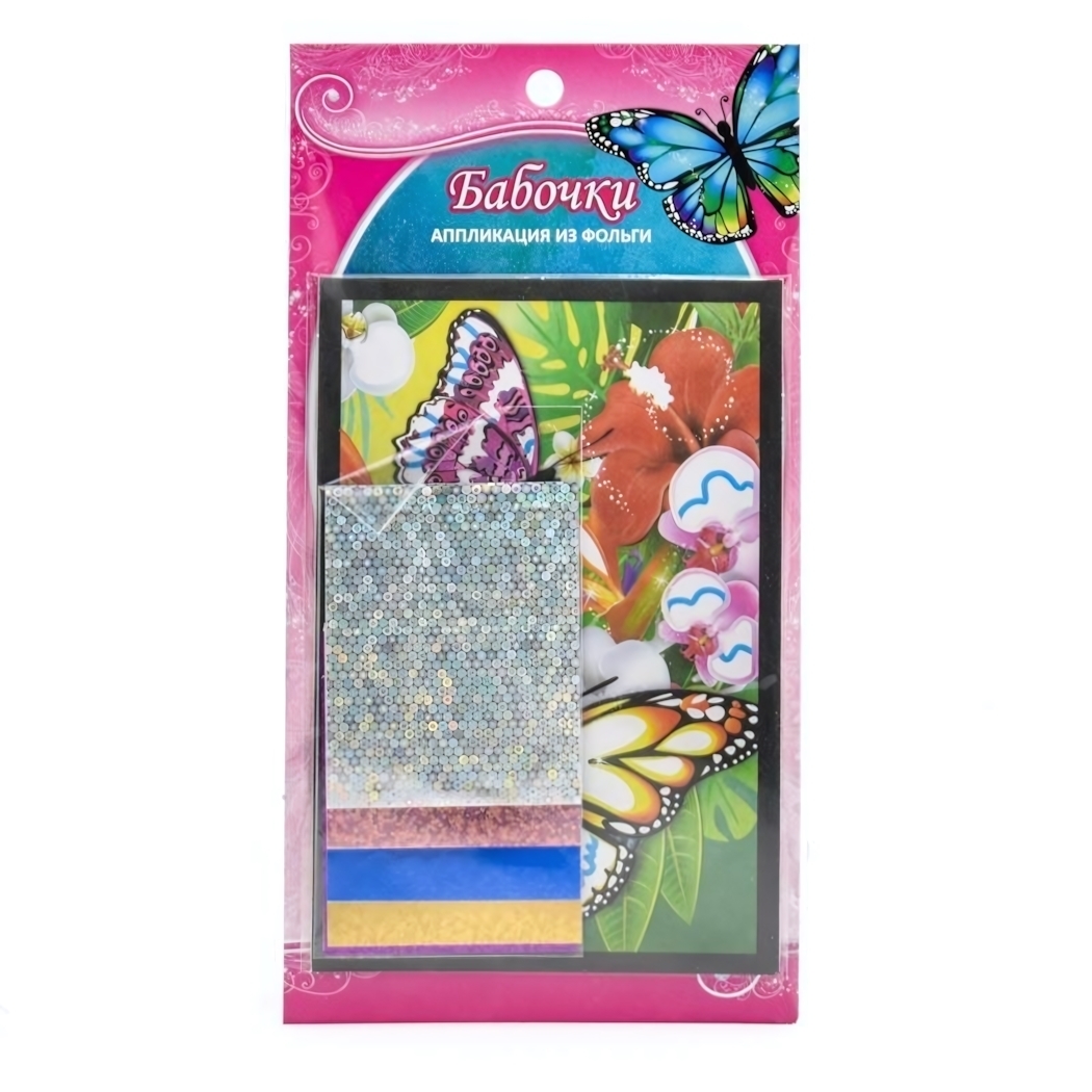 Аппликация из фольги "Цветы и бабочки", 5 листов, для творческого развития