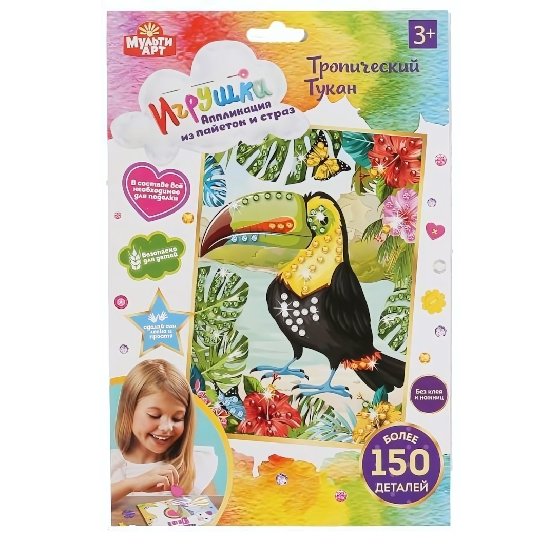 Набор для творчества «Тукан» с пайетками и стразами, 17х23 см, 3+, без клея и ножниц