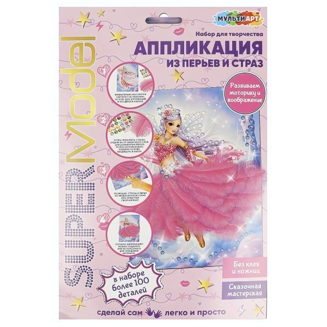 Аппликация из перьев и страз "Стильная фея", 17х23см, для детей от 3 лет