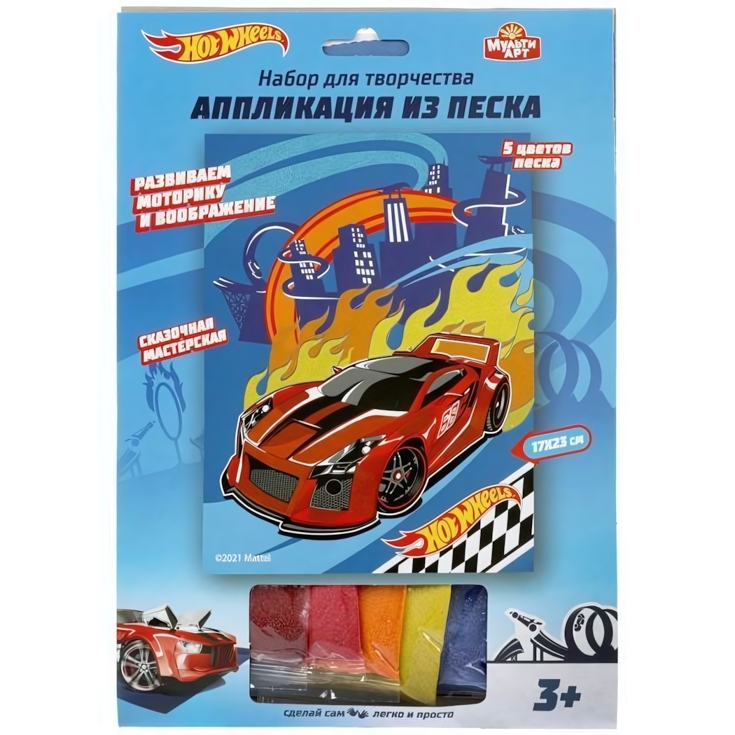Аппликация из песка "Hot Wheels" 17х23см, 5 цветов, от 3 лет
