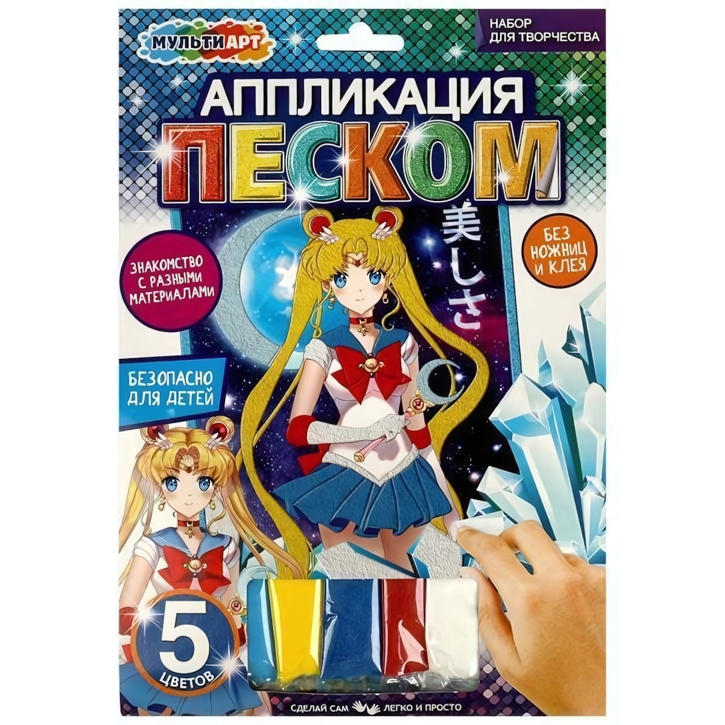 Этот набор для творчества позволяет детям от 3 лет самостоятельно создавать сверкающие изображения, развивая моторику, воображение и внимательность. Простая в использовании картонная основа и разноцветные блестящие пески делают процесс создания увлекательным и безопасным, без использования клея и ножниц.