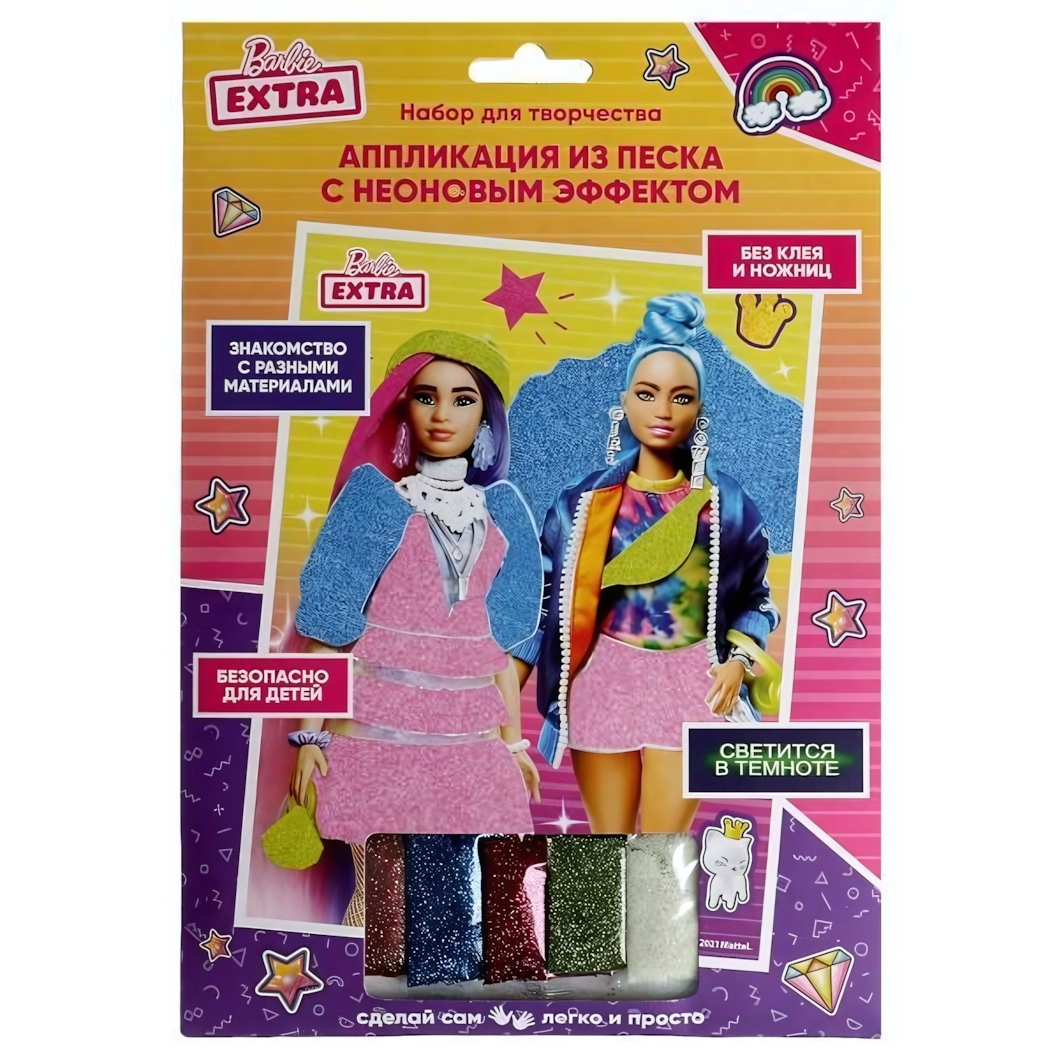 Аппликация из песка «Барби», неоновая, 17х23 см, набор для творчества, светится в темноте
