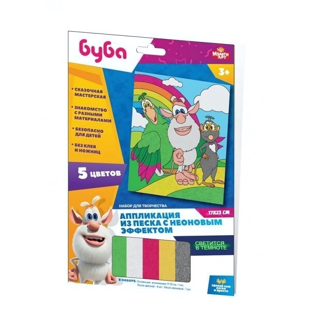 Набор для аппликации из неонового песка «Буба» — это увлекательный способ развить творческие способности и мелкую моторику в игровой форме. Яркая картинка со знакомыми персонажами оживёт под руками малыша, а волшебное свечение готовой работы подарит восторг и вдохновение.