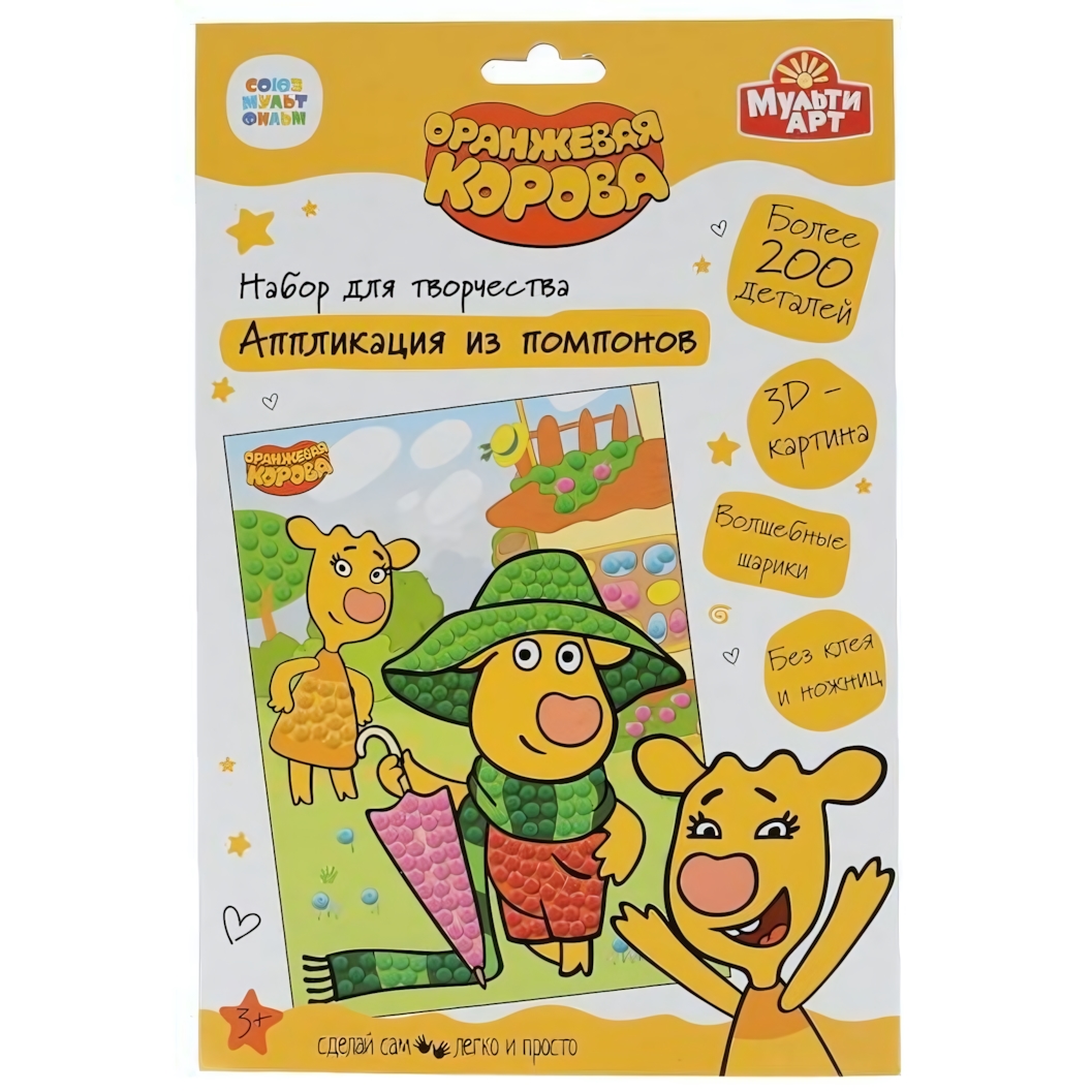 Подарите своему ребенку возможность проявить свою фантазию и создать уникальное произведение искусства с аппликацией из помпонов "Оранжевая корова"!