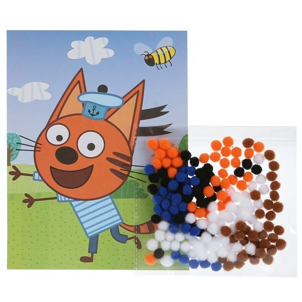 Аппликация из помпонов «Три кота. Коржик», 17х23см – создай картину своими руками!