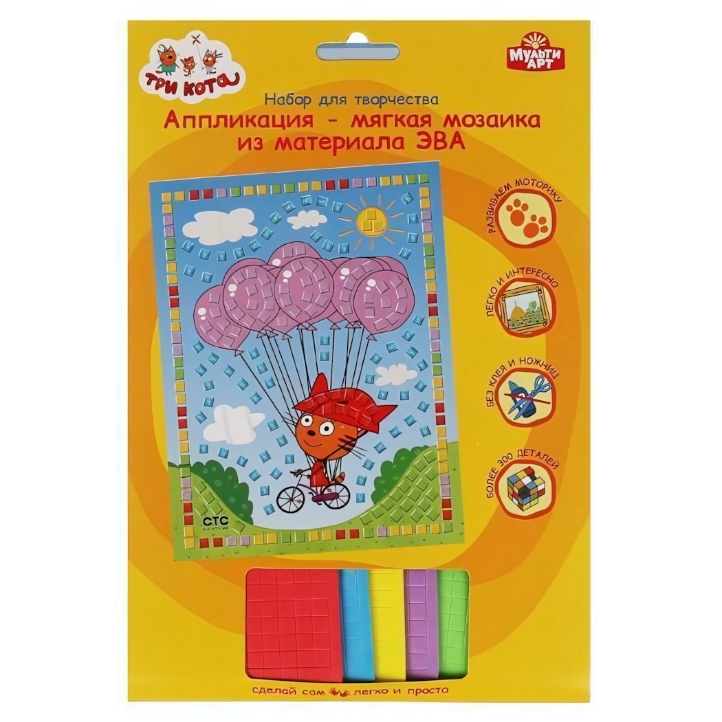 Погрузитесь в мир творчества с мягкой мозаикой «Три кота» от «Мульти Арт»! Этот набор – идеальный способ развить творческие способности вашего ребенка, подарив ему часы увлекательного и полезного времяпрепровождения. Создайте красочную аппликацию с изображением любимых персонажей мультфильма, которая станет прекрасным украшением детской комнаты или замечательным подарком для близких.