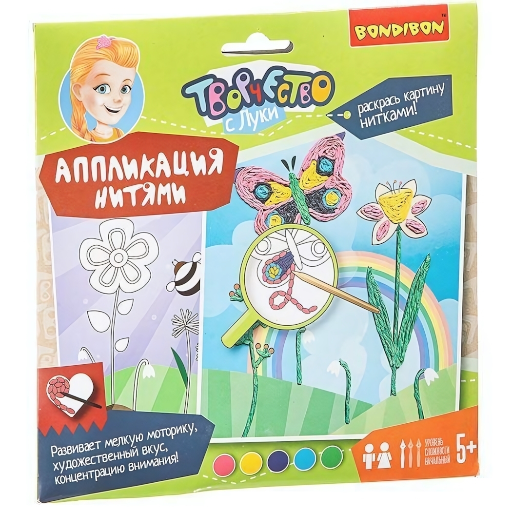Аппликация нитями 'Цветочная поляна', Bondibon, для детей от 5 лет, набор для творчества