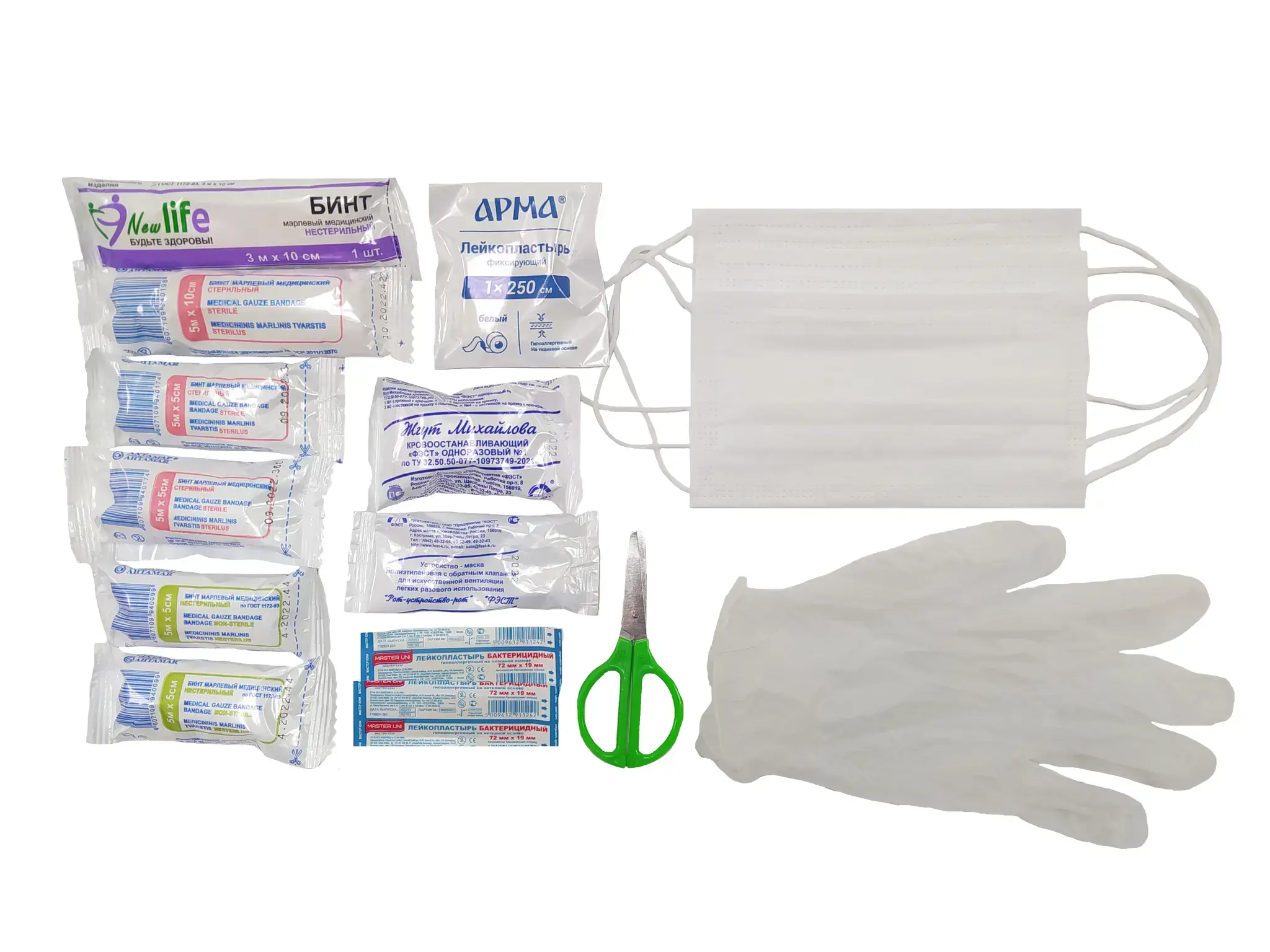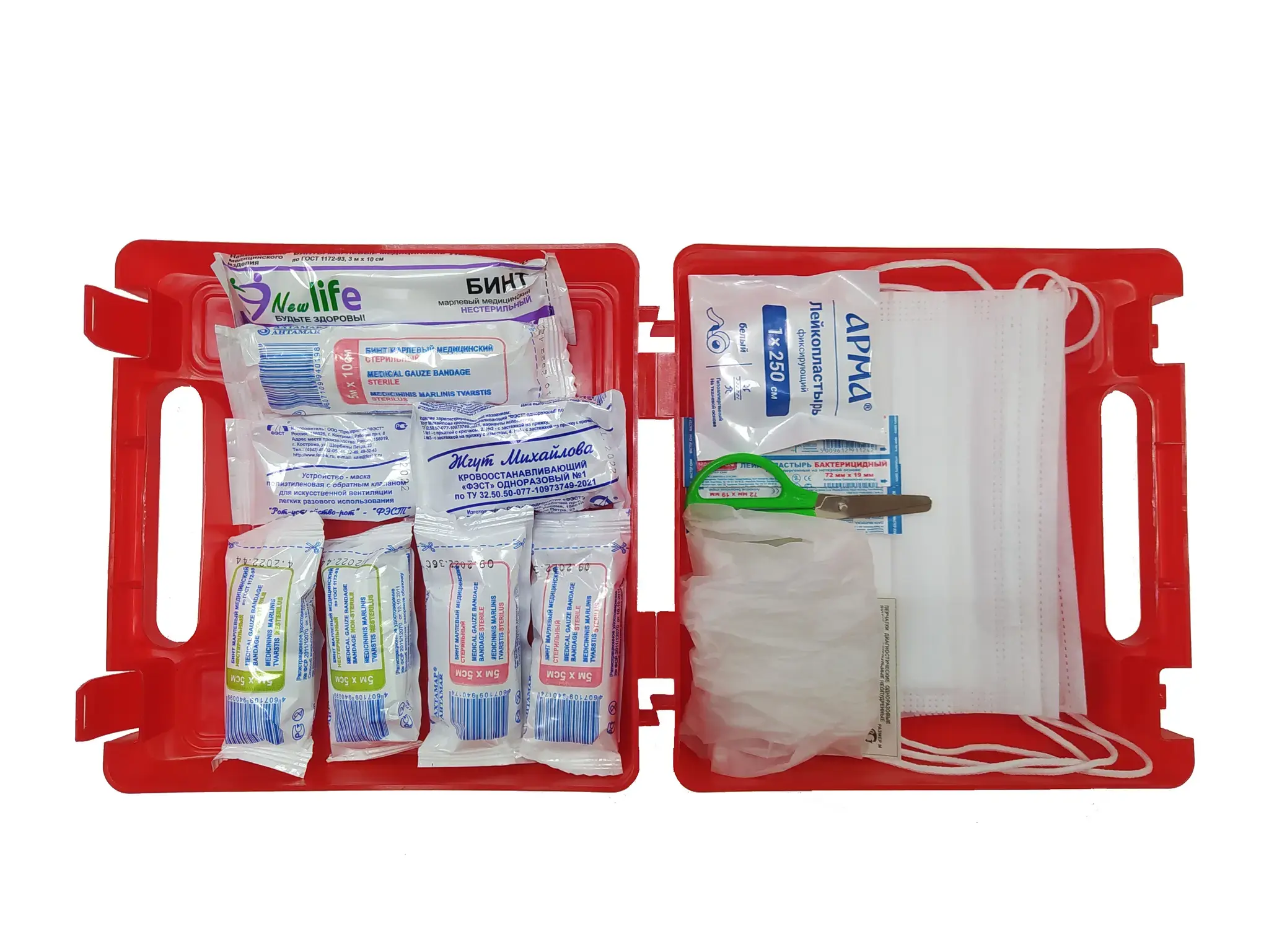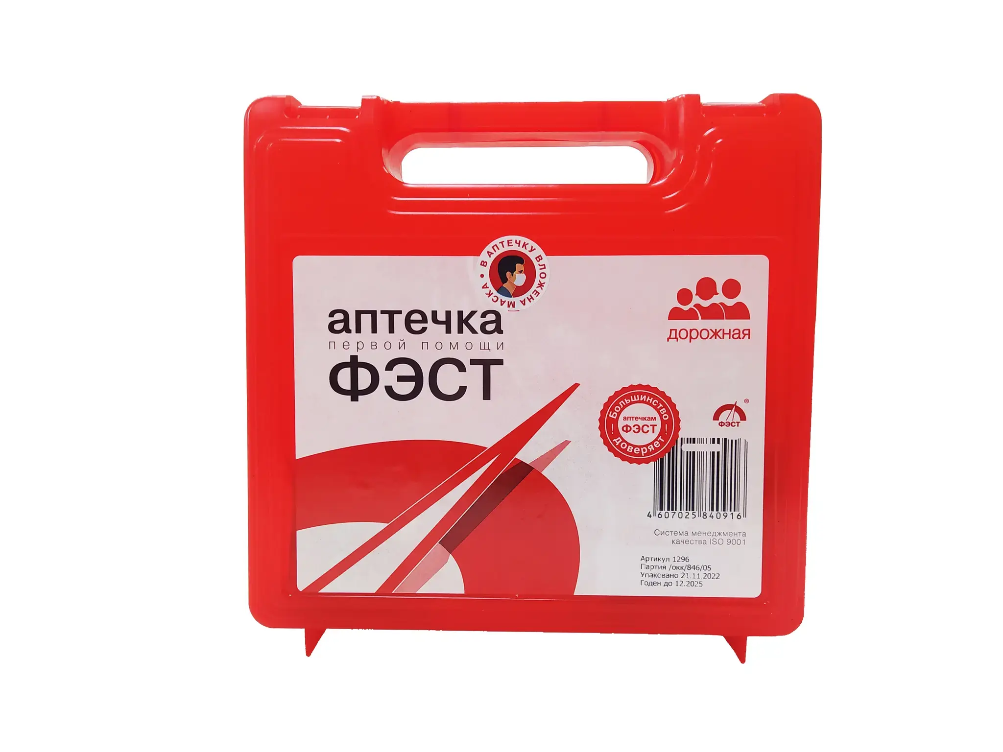 Аптечка дорожная «ФЭСТ Ф-10» №6, полистирол, 205×205×70 мм, 11 предметов: жгут, бинты, маска