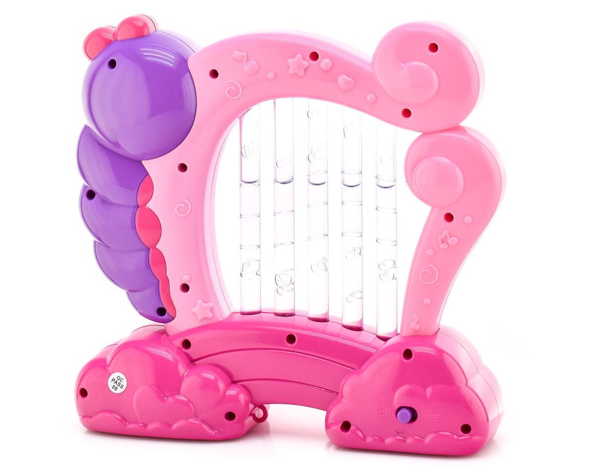 Детская интерактивная арфа "Чудо арфа" с подсветкой и звуком, розовая, 28,5х8,5х23,5см, для развития моторики