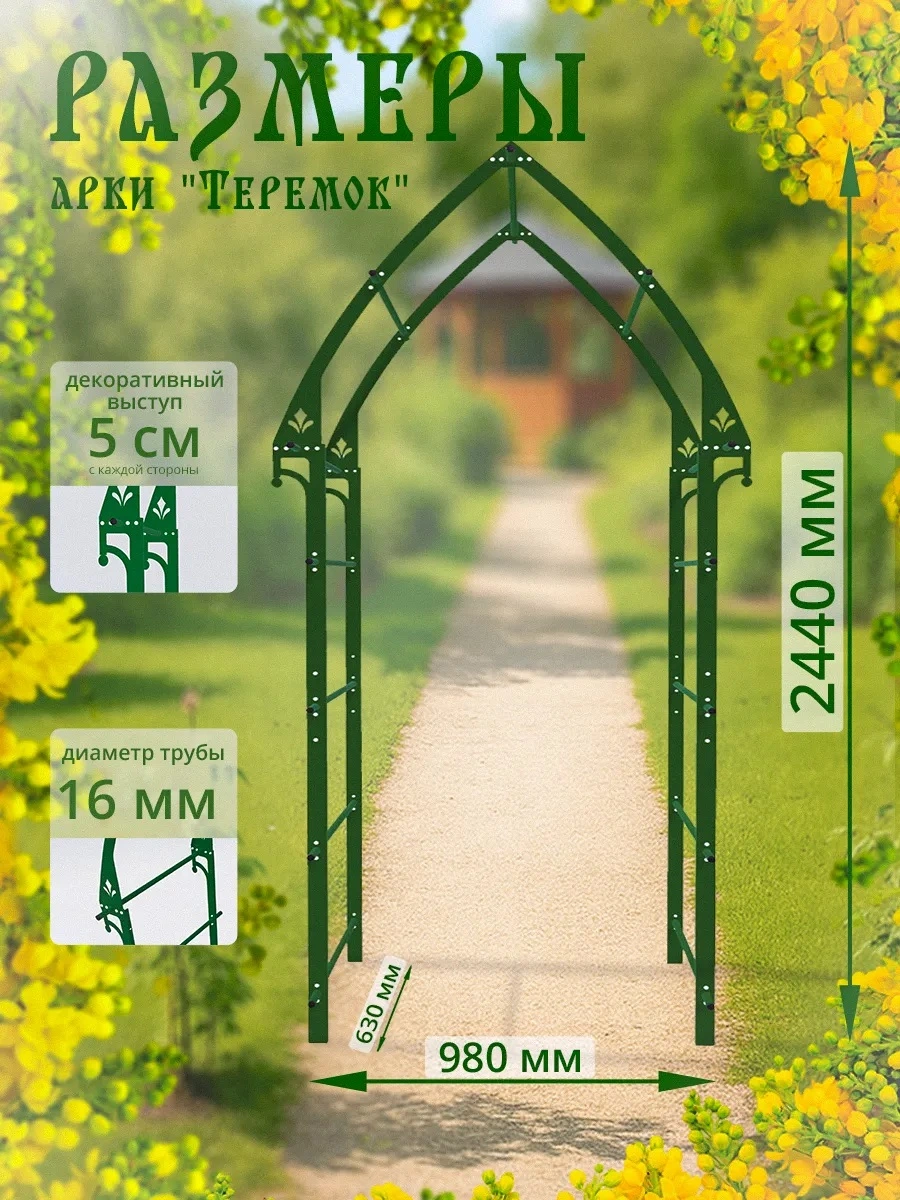 Создайте уютный вход в сад, подчеркните дорожку или оформите зону отдыха с помощью изящной садовой арки. Модель «Теремок» помогает превратить обычное пространство в живописный уголок с вьющимися растениями, создавая атмосферу уюта и гармонии.