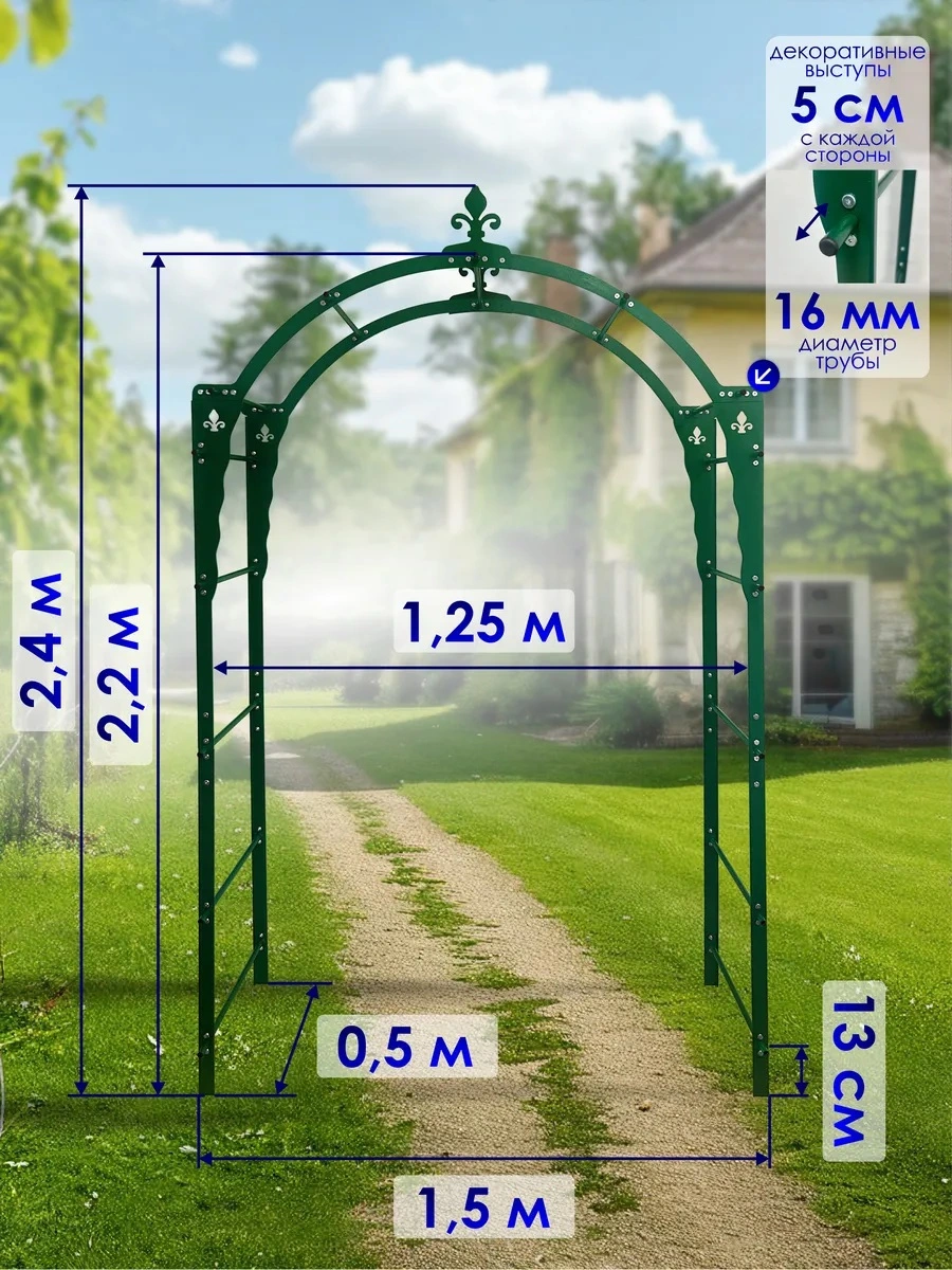 Садовая арка «Царица» — это гармоничное сочетание декоративности и надежности, которое поможет создать выразительный ландшафт и подчеркнуть индивидуальный стиль вашего участка.
