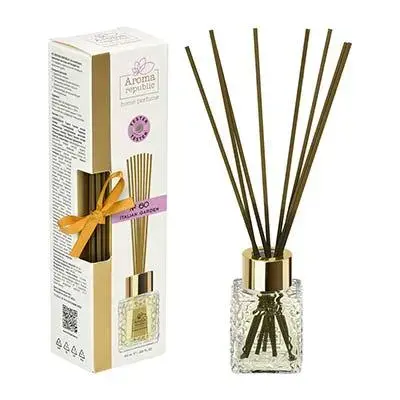 Подарите своему пространству атмосферу гармонии и утончённого стиля с ароматическим диффузором 50 мл "№60 Italian garden". Изящный стеклянный флакон с рельефной поверхностью и элегантная золотистая крышка станут не только источником приятного аромата, но и стильным элементом интерьера. Аромат наполняет комнату лёгкими нотами сада, создавая умиротворение и комфорт.