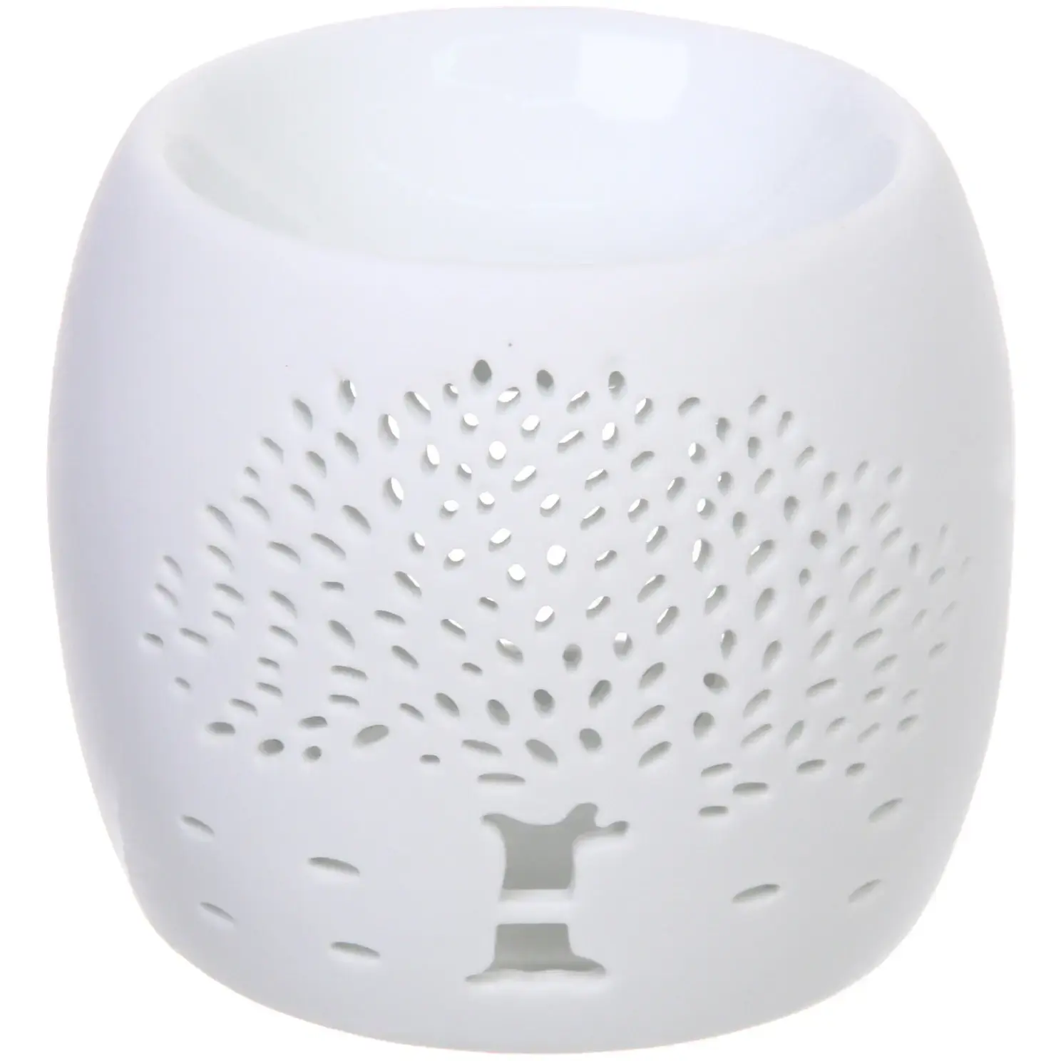 Эта изысканная аромалампа поможет создать атмосферу тепла, уюта и расслабления в любом помещении. Изготовленная из прочной керамики, она сочетает функциональность и декоративную привлекательность, становясь не только средством ароматизации, но и стильным элементом интерьера. Белый цвет и ажурный вырез в форме дерева придают изделию утончённый вид, а мягкий свет, проходящий сквозь узоры, создаёт особое настроение.