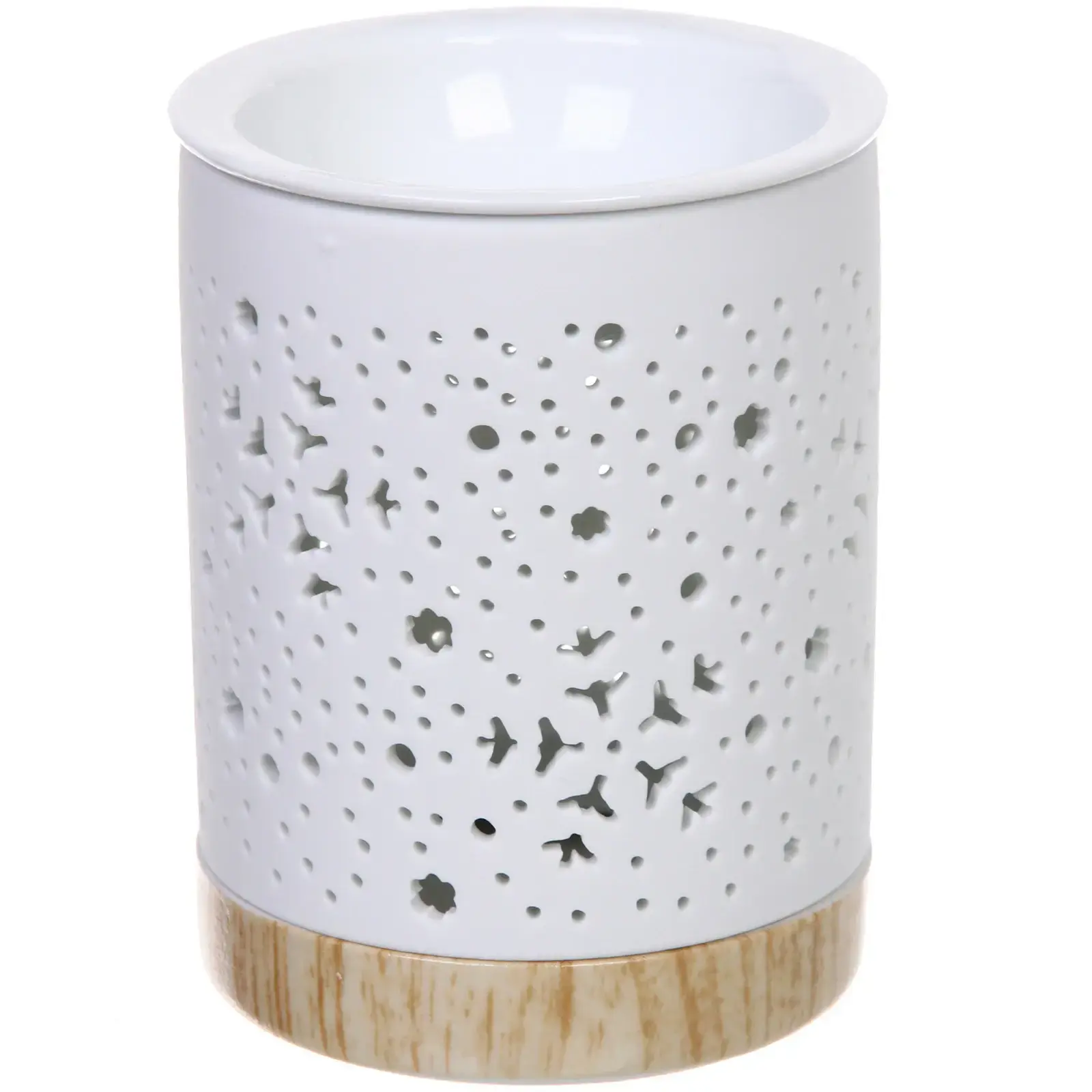 Создайте атмосферу тепла и уюта с помощью ароматной подсветки. Эта керамическая аромалампа «Снежинка» станет стильным акцентом в интерьере и источником приятных ароматов, наполняющих пространство. Белоснежный корпус с ажурными прорезями в виде снежинок, звезд и силуэтов птиц создаёт красивую игру света при использовании свечи.