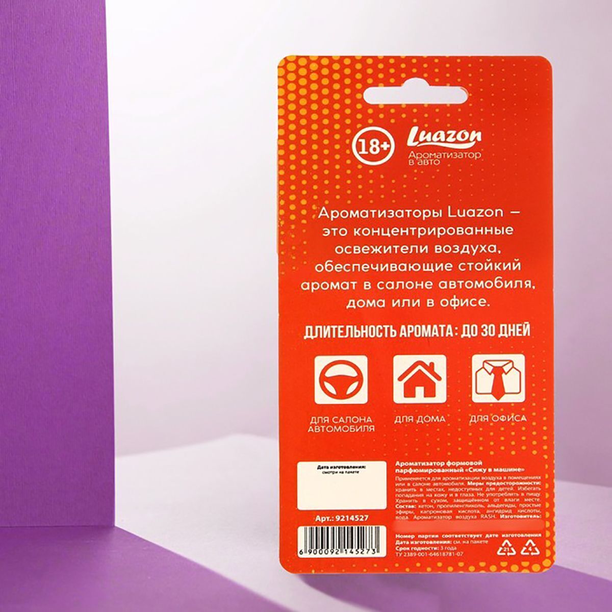 Ароматизатор легко устанавливается в любом автомобиле и подходит для использования в различных помещениях. Он станет отличным подарком для друзей и близких, а также прекрасным способом поднять настроение себе и окружающим. Длительность аромата составляет до 30 дней, что позволяет наслаждаться свежестью без лишних забот.