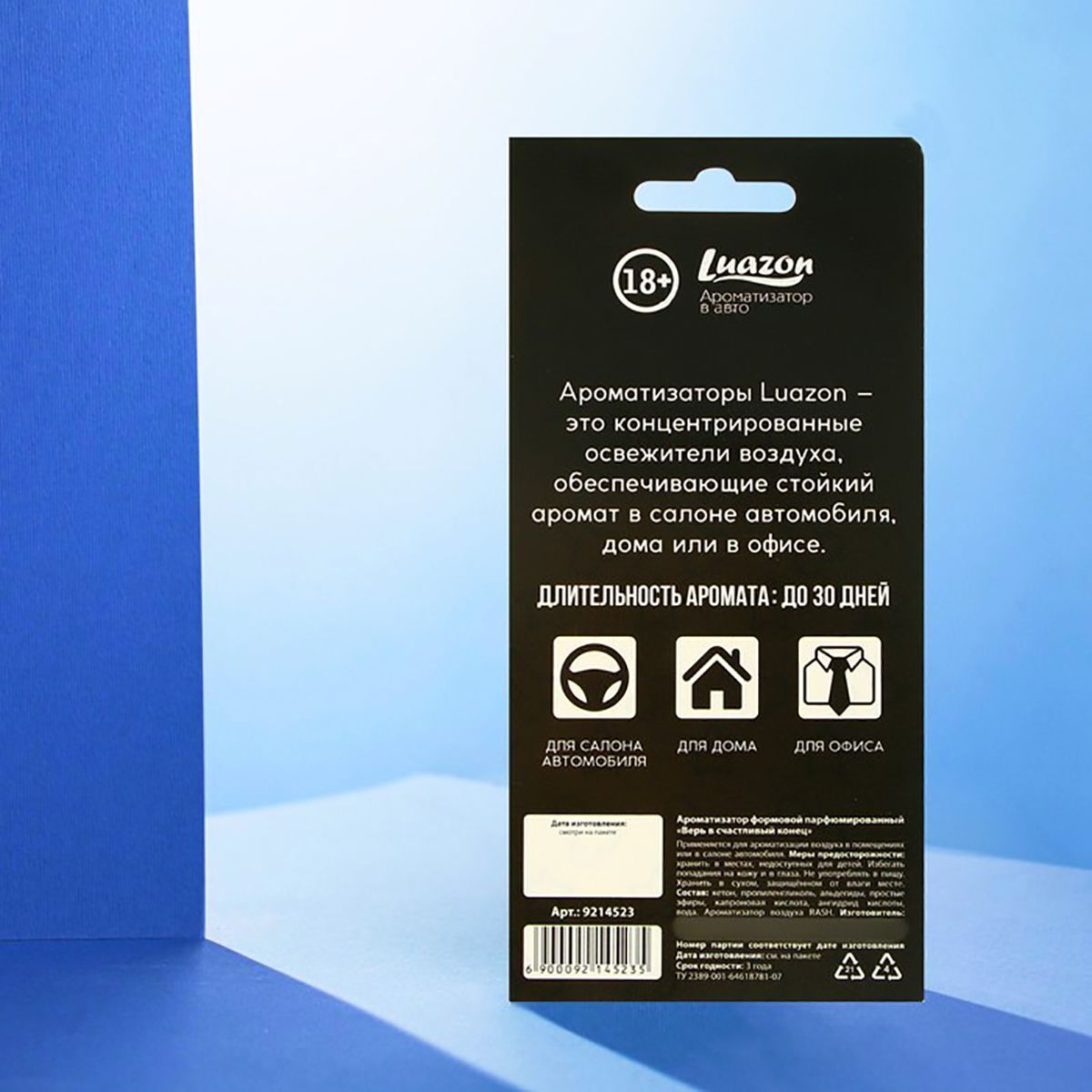 Погрузитесь в атмосферу комфорта и уюта с ароматизатором для автомобиля «Верь в счастливый конец». Этот бумажный ароматизатор не только освежит воздух в вашем автомобиле, но и добавит нотку юмора в каждую поездку. Сохраняет аромат до 30 дней, что позволяет вам наслаждаться свежестью на протяжении длительного времени.