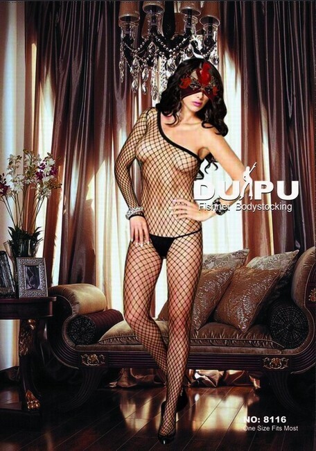 Комбинезон сетчатый "Fishnet Bodystocking 8116", асимметричный дизайн, нейлон/спандекс, черный, 42-46
