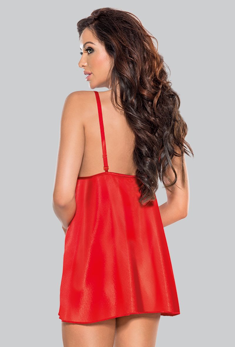 Сорочка выполнена в насыщенном красном цвете, который символизирует страсть и уверенность. Комбинация атласа и кружева создает визуально привлекательный контраст текстур. Для сохранения первоначального вида изделия рекомендуется бережная стирка в соответствии с инструкциями на ярлыке, сушка вдали от прямых источников тепла и аккуратное глажение при низкой температуре.