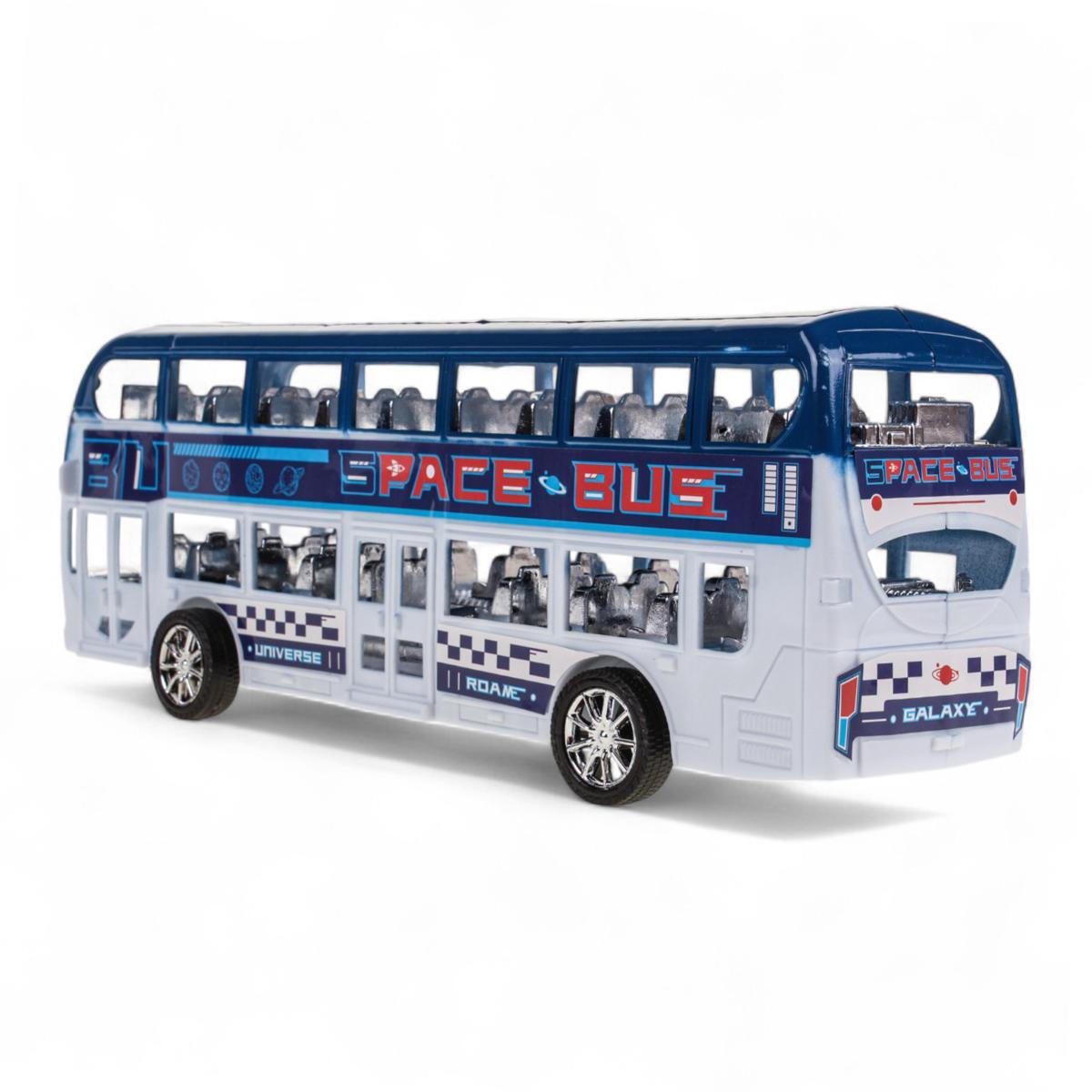 - Детализированный дизайн — стеклянные элементы фар, рельефные узоры и надпись «SPACE BUS» создают эффект настоящего городского транспорта.